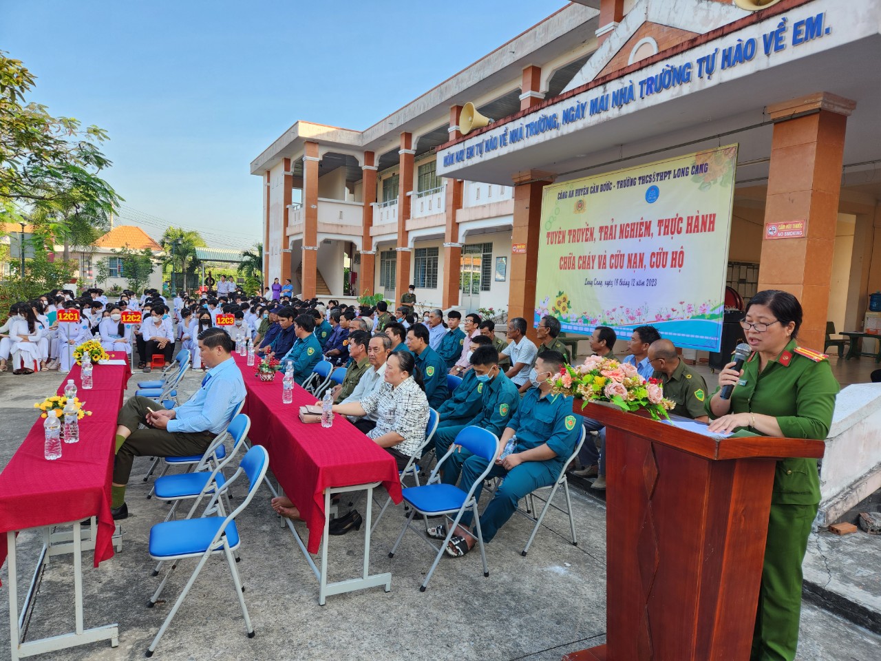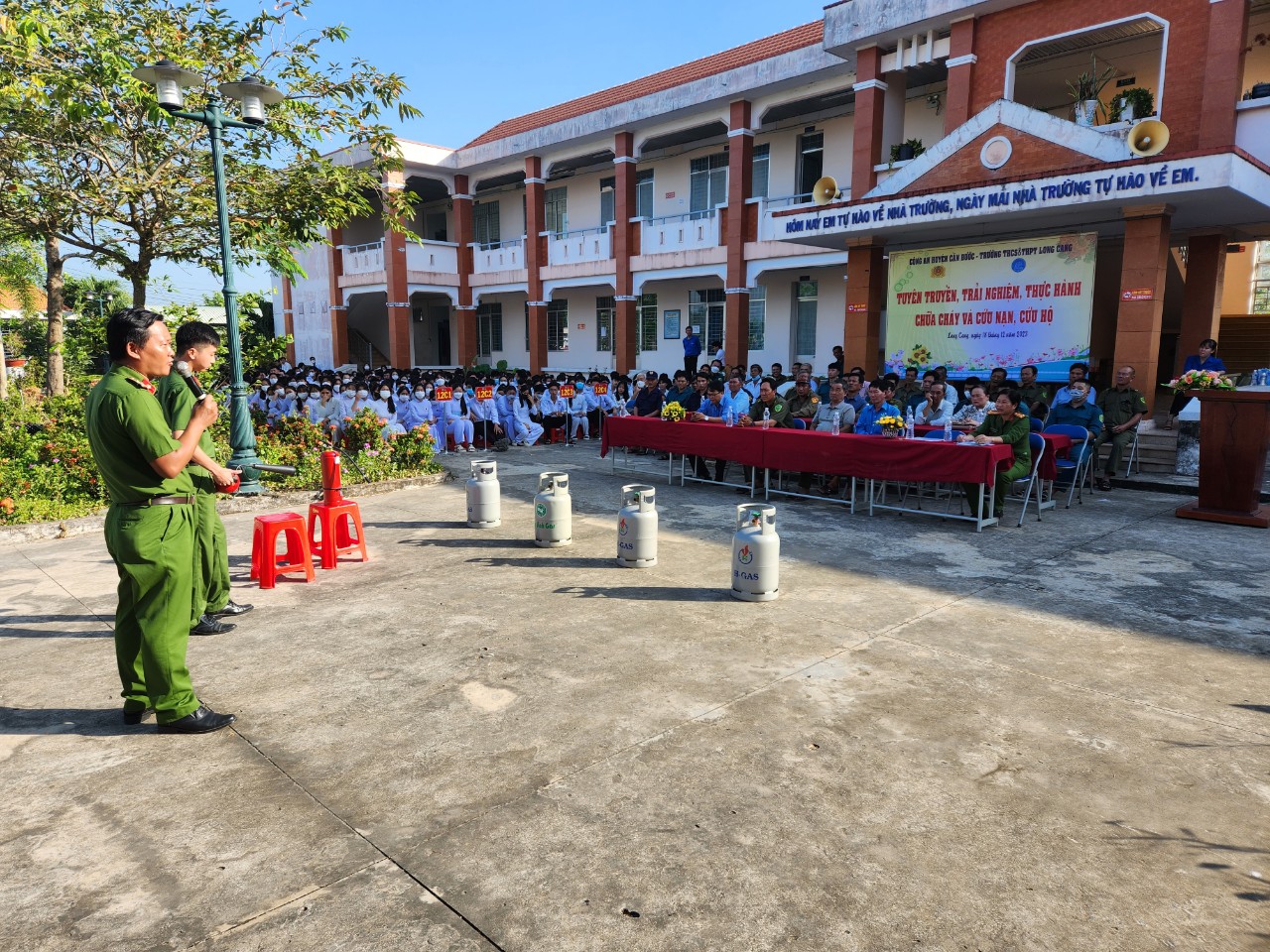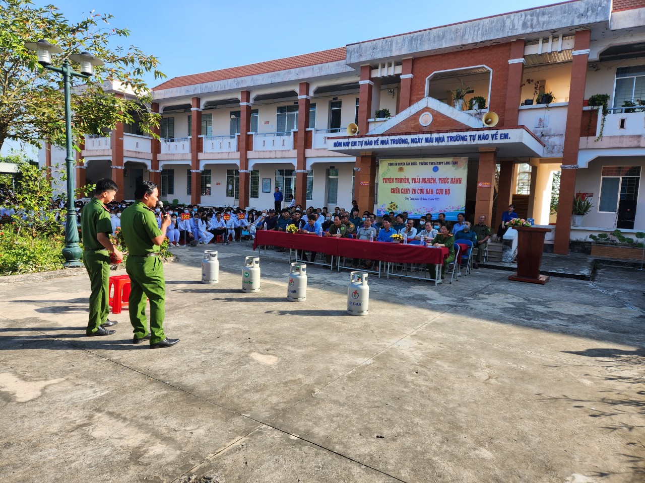 Hình tập huấn PCCC,CNCH cho giáo viên, học sinh ngày 18/12/2023